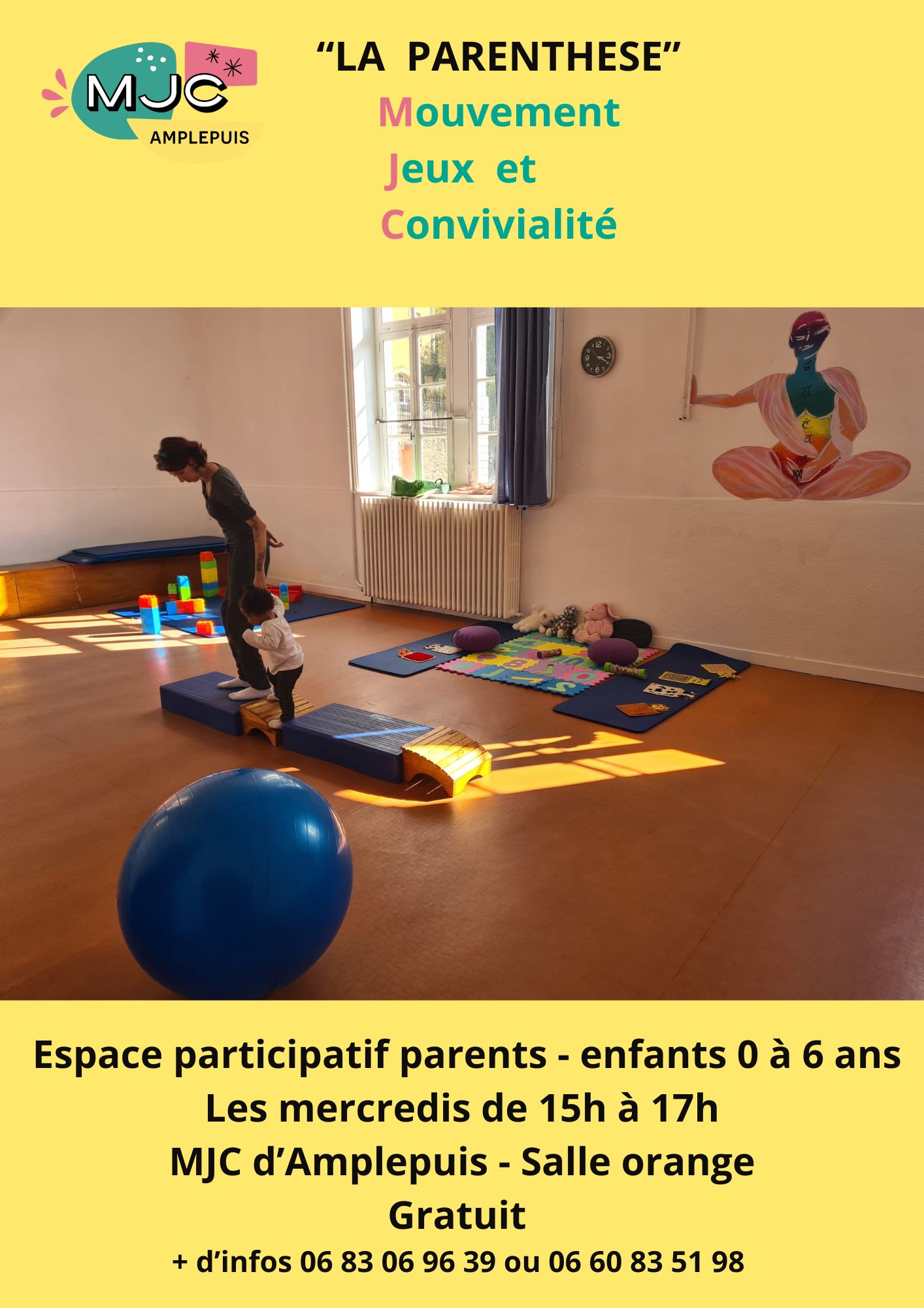 ​Un espace d'accueil, de partage et de jeu pour les 0-6 ans et leurs parents. ​Bienvenue à La Parenthèse, un lieu pensé par et pour les familles, un espace où chacun est acteur. Pour que ce moment soit agréable et riche pour tous, voici quelques principes pour co-vivre et co-créer ensemble ​ Chacun est responsable de son enfant : ​La Parenthèse est un lieu d'accueil libre et convivial. La surveillance et la sécurité de votre ou vos enfants sont sous votre entière responsabilité. Nous comptons sur votre vigilance bienveillante. ​Un espace propre et confortable : ​Afin de préserver la propreté et le confort pour tous les petits pieds, les chaussures sont laissées à l'extérieur ou dans l'espace prévu à cet effet. ​Nous invitons chacun à participer au rangement du matériel et des jeux à la fin de chaque session. Un espace rangé est un espace où l'on a plaisir à revenir ! ​Respect du matériel et des personnes : ​Le matériel mis à votre disposition est un bien commun. Merci d'en prendre soin et de l'utiliser avec respect. ​La Parenthèse est un lieu d'échanges. Nous encourageons le respect, l'écoute et la bienveillance envers toutes les personnes présentes. ​Un temps de partage connecté (sans écran) : ​Pour favoriser les interactions réelles entre enfants et parents, nous vous invitons à laisser les téléphones portables et autres écrans de côté durant votre temps ici. Profitons pleinement de ce moment pour se connecter les uns aux autres. ​Un lieu sans responsable (mais avec des acteurs !) : ​Cet espace fonctionne sur l'implication de chacun. Il n'y a pas de "responsable" permanent, car chaque parent est un acteur de la vie de La Parenthèse. Ensemble, nous faisons vivre ce lieu. ​ Investir l'espace et le projet : ​La Parenthèse est un lieu vivant qui se construit avec vous. Chaque parent est invité à s'investir, à proposer des idées, et à s'approprier cet espace commun. ​Proposer une activité : Vous avez une compétence, une passion, ou une idée de jeu à partager ? Une feuille d'inscription est disponible pour proposer une animation ou une activité pour la semaine suivante. Votre participation est la richesse de notre lieu ! ​Nous vous souhaitons un très beau moment de Mouvement, de Jeu et de Convivialité !