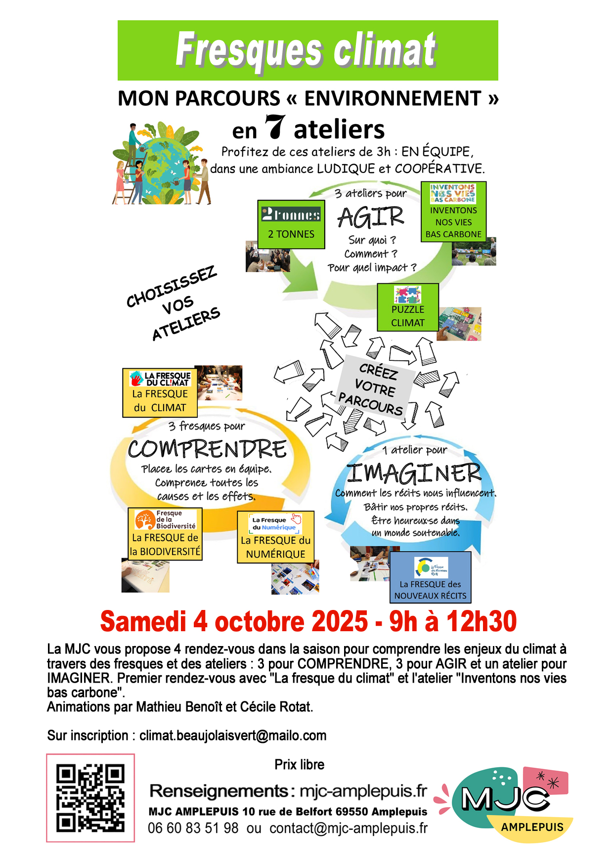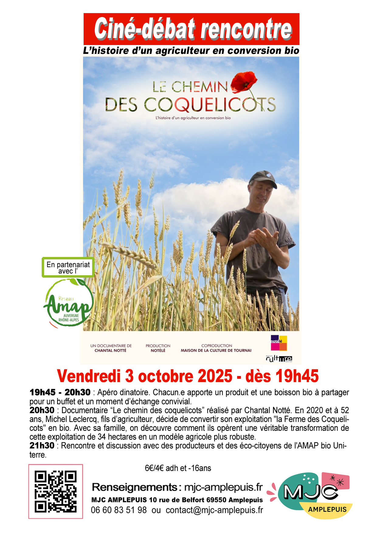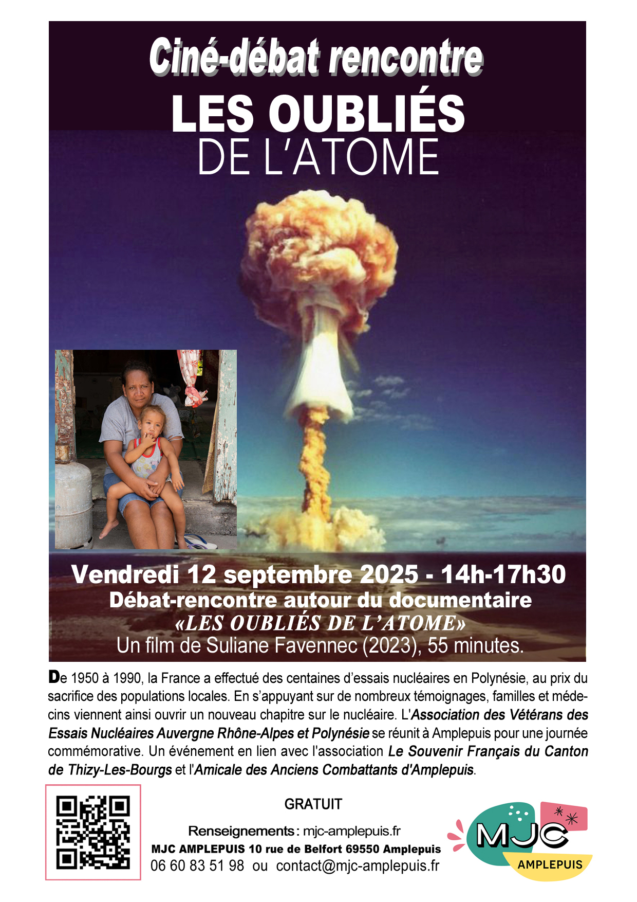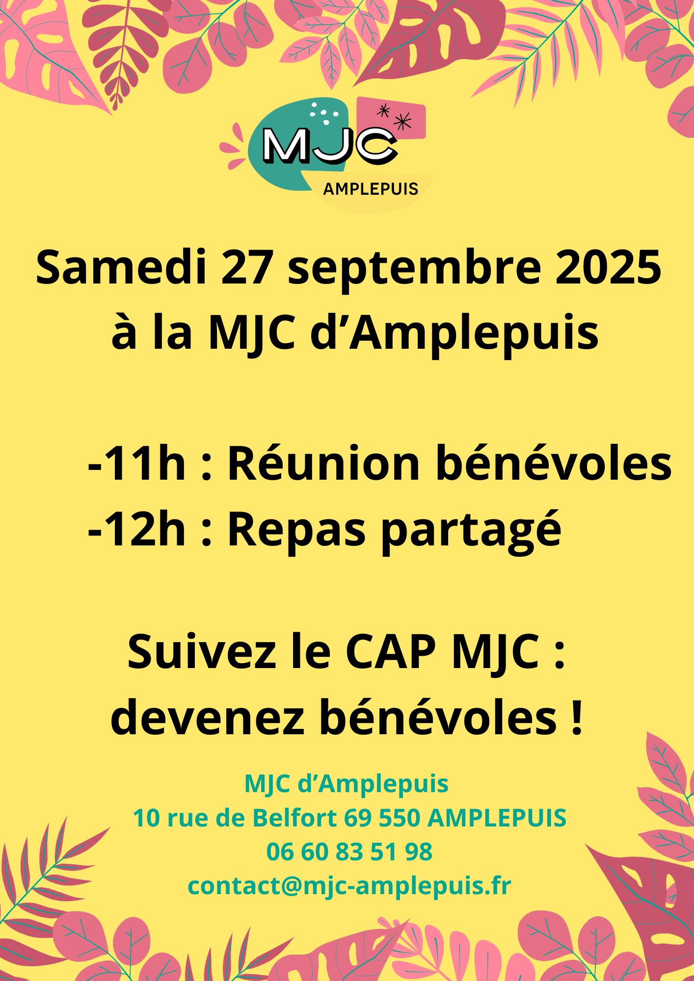 Dans le cadre "Du foin sur les planches" organisé par Courant d’Art avec le soutien de la COR. En partenariat avec la MJC d'Amplepuis et le Tiers-Lieu l'Atelier. Départ et arrivée : à la MJC d'Amplepuis 10, rue de Belfort 9h30 -12h30 Balade piétonne lente dans une Amplepuis surprenante. Avec des événements et sensations déroutantes sur le ralentir... 12h30 - 15h Repas cuit au four tahitien – spectacle danse concert polynésien Une balade pour se divertir avec humour et sensations, avec un circuit à trouver, des rencontres surprises, des événements-jeux, des découvertes insolites sur Amplepuis, un repas exotique traditionnel, un concert dansé tahitien avec le groupe Taravana. Et pourquoi pas une sieste sur place ? Un temps lent à s'inventer, à s'approprier ensemble, hors du temps... Pour découvrir Amplepuis comme vous ne l'aurez jamais ressenti... Tarif "balade RALENTIR" seule : 5€/3€ réduit Tarif "balade RALENTIR" et repas spectacle tahitien : 18 € (sans les boissons) Tarif Repas-Spectacle tahitien seul (sur place ou à emporter) : 15 € / 8€ (- 14 ans) / gratuit pour enfant - de 5 ans. Réservation obligatoire auprès de la MJC : 06 60 83 51 98Un temps lent à s'inventer et à s'approprier ensemble, surprenant et déroutant, hors du temps… Samedi 28 juin de 9h30 à 14h C'est SAMEDI, ON RALENTIT !